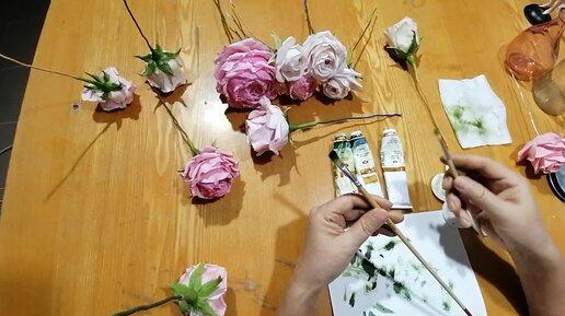 Тонировка масляной краской чашелистиков розы из холодного фарфора
