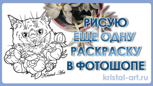 Раскраска - Котик. Цифровой рисунок. Рисую в фотошопе. Лайн.