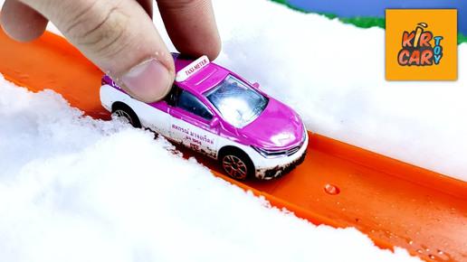 Машинки игрушки Hot Wheels едут по снегу, грязи и лужам. Кир Кар Тойс