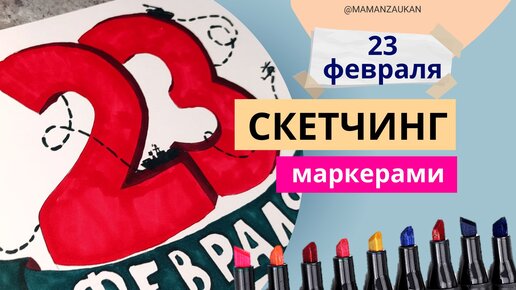 Рисунок-открытка к 23 февраля. Пошаговое рисование маркерами