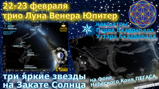 Три яркие звезды на закате 22-23.02/ Пегас и Накшатры Бхадры - накшатры Южного галактического полюса