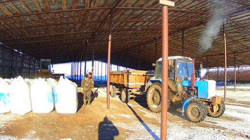 Завоз удобрений на новый сезон на МТЗ и КАМАЗе, разгрузка на ТО-30.