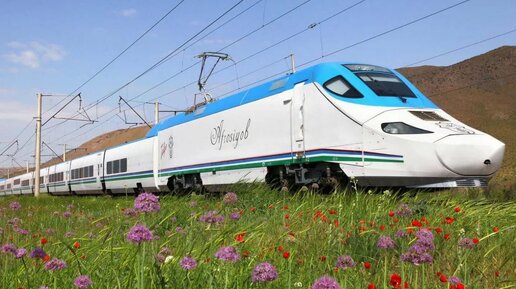 Отправление высокоскоростноного электропоезда Тalgo со станции Ташкент.