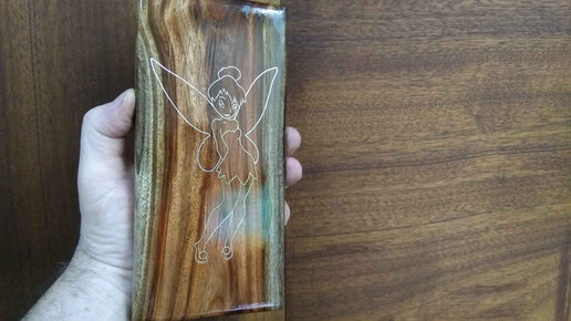 Феечка. Инкрустация на камфорном лавре латунью и алюминием.