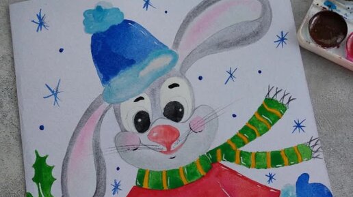 Акварельный Рисунок с детьми 6-7 лет, для уроков ИЗО "Кролик Мороз"