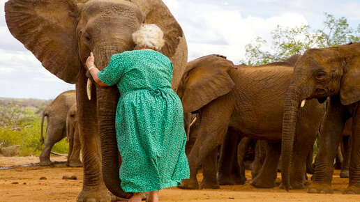 Женщина всю жизнь помогала слонам и теперь они приходят ее обнять