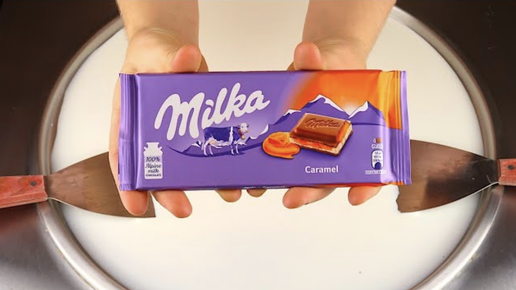 ASMR Milka Caramel РЕЦЕПТ Мороженое в рулетиках Странно сытное жареное мороженое Еда