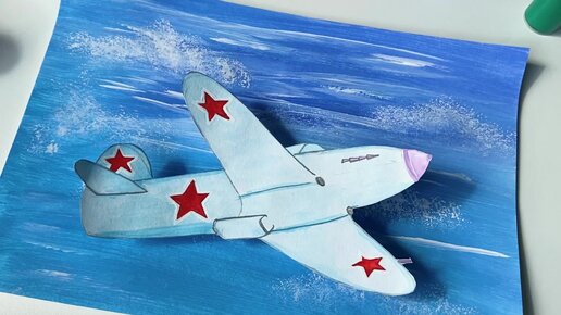 Рисунок "Самолет" или объёмная аппликация. Показываю, как нарисовать красивое небо с помощью штампов для творчества.