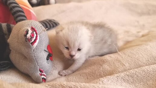 12 дней после рождения и Котенок уже открыл глазки и стал активный