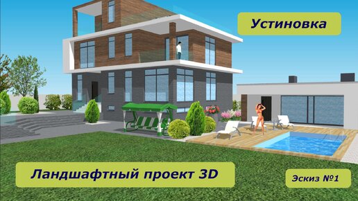 Положение дома "Хай-тек" на участке 12 соток. Эскиз из Ландшафтного проекта 3D "Устиновка".