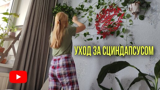 Уход за большим СЦИНДАПСУСОМ/ Пересадка и Душ для растения🌿