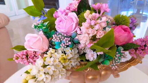 Старый обновленный букет сирени с розами