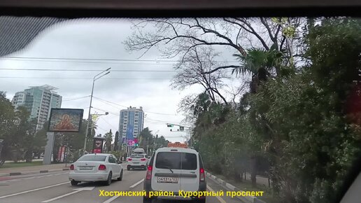 Сочи, едем на автомобиле через весь Хостинский район по трассе Е97 и Курортному проспекту, от Кудепстинского до Верещагинского виадуков.