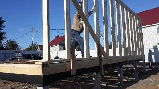 Монтаж каркасной стены каркасного дома.