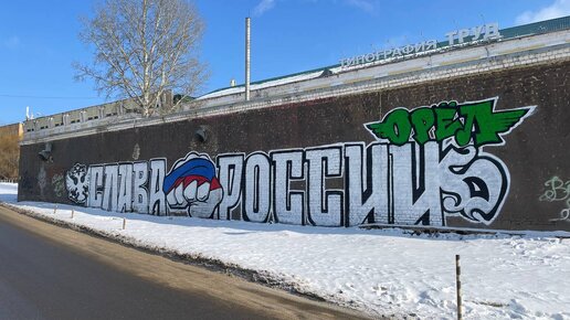 Футбольные фанаты устроили фаер-шоу на фоне граффити «Слава России» в центре Орла