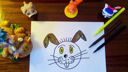 Рисуем мордочку зайчика фломастерами. Рисунок для детей