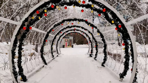Прошел от МЦК Соколиная гора в Измайловский парк. Прогулка по зимнему парку в Измайлово. Световой новогодний тоннель, колесо обозрения, пруд