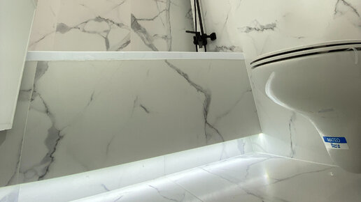 Парящий экран под ванны из плитки, + подсветка ниши для ног