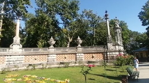 Массандровский дворец и терраса с фонтанчиками перед ним в Крыму.