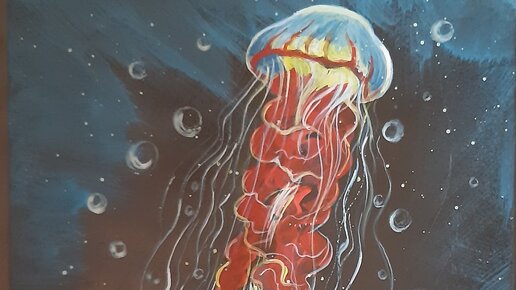 Обитатели моря. Акрил. Автор Е. Сизова #живопись #медуза #море