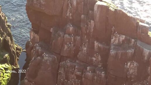 Колония (птичий базар) моевок - морских чаек - на побережье Баренцева моря