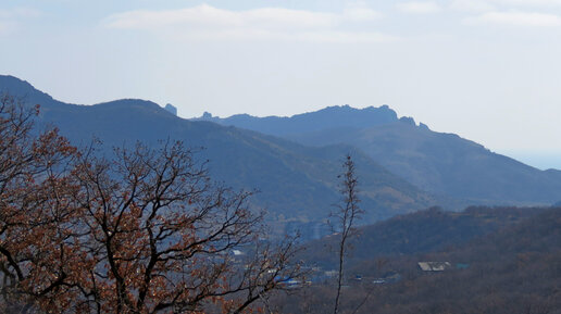 Вид на долину Отуз и п. Щебетовка со склонов Спящей красавицы. Февраль.