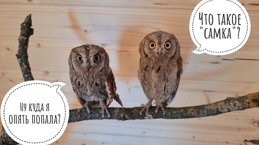 Заселение новых сов сплюшек в вольер к Труню и Вштырю. Совсем маленькие совы