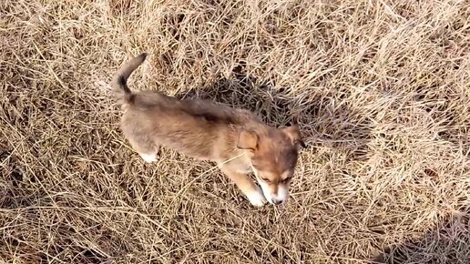 Пошёл за сеном - щенки за мной :))