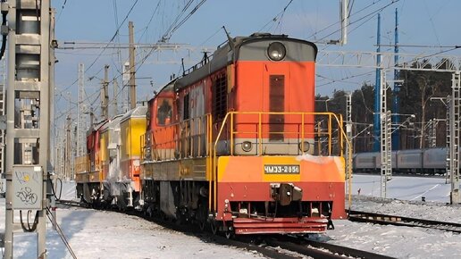 Теаловозы ЧМЭ3-2856 и ЧМЭ3-4712 со снегоочистителем ПОМ1М-030.
