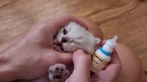Продолжаем лечить глаза котенка, а он царапается и громко мяукает