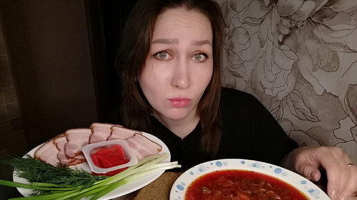 МУКБАНГ/Осталась одна😩Ем БОРЩ с ГРУДИНОКОЙ, ЛУКОМ И ЗЕЛЕНЬЮ🔥💥💣