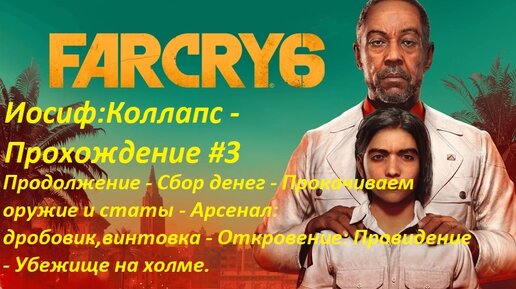 Иосиф:Коллапс-Продолжение-Сбор денег-Прокачиваем оружие и статы-Арсенал:дробовик,винтовка-Откровение:Провидение-Убежище на холме. Far Cry 6.