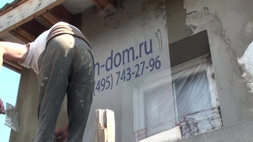 Базовый армирующий слой на фасадах дома, технология СФТК Мокрый Фасад. Втапливание Фасадной Стеклотканевой Сетки Bautex Krepix 2000 в клей