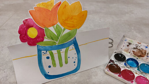 Аппликация 8 марта, ,, делаем с детьми, DIY 8 MARCH PRESENT WITH KIDS.... ваза с цветами