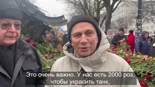 Немцы несут цветы к российскому танку