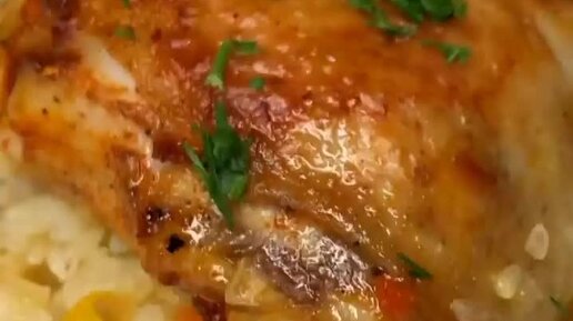 Запечённая курица в духовке с овощами и рисом.