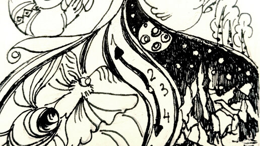 Графика . Чёрный тонкий маркер. Авторская разработка. Графическая фантазия. "Детство". Для взрослых.
