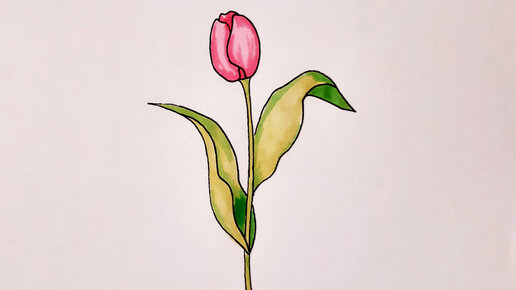 Как нарисовать ТЮЛЬПАН шаг за шагом/РИСУНКИ ДЛЯ СРИСОВКИ НА 8 МАРТА