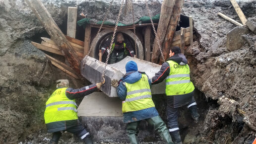 монтаж Круглой железобетонной трубы 1,25м на ПК13518+79,41 во второй этап,якобы со шпунтами. Октябрьская железная дорога.