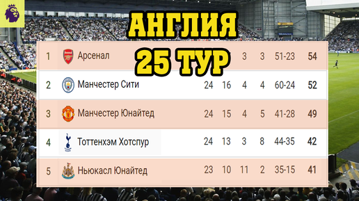 Чемпионат Англии (АПЛ) 25 тур. Результаты, расписание, таблица