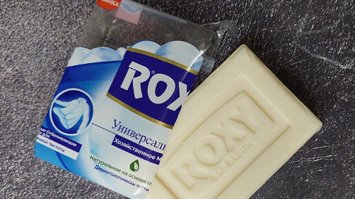 Хозяйственное мыло Roxy очень сухое в пыль , аромат достаточно химозный, но приятный.