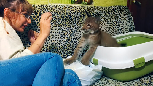 Рысь Ханна играет со своим большим подарком