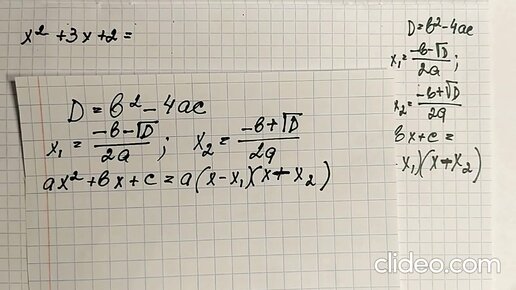 Разложение квадратного трехчлена на множители (дискриминантом).