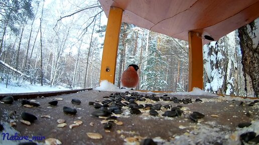 Красивые птички в лесу. Снегири, синички и даже дятел решил показать себя во всей красе.