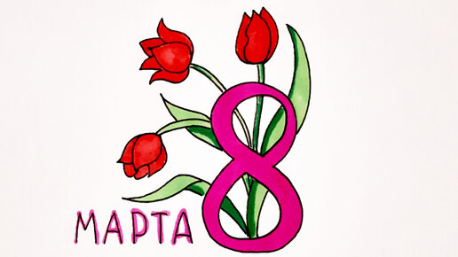 КРАСИВЫЙ РИСУНОК НА 8 МАРТА/рисуем тюльпаны