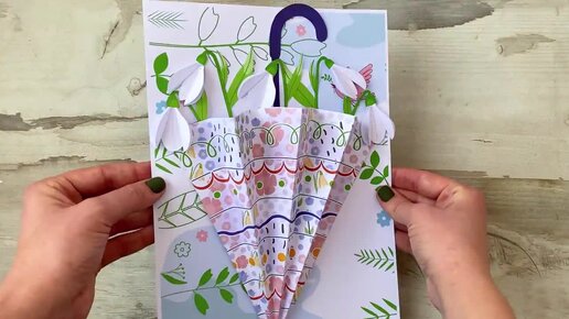 Весенний зонтик» Аппликация из бумаги, весенняя поделка для детей своими руками, шаблоны, распечатать, поделки весна цветы, зонтик