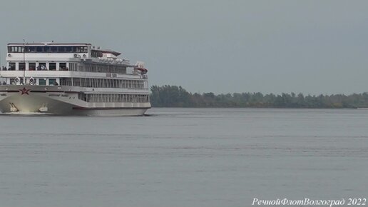 Пассажирский теплоход А.Радищев идет по Волге в Волго-донской судоходный канал