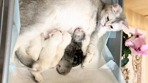 Новорожденные котята кошки Кайли. Утро первого дня.