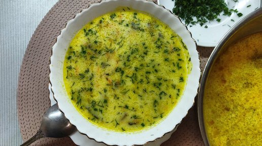 Сырный суп с курицей и грибами.