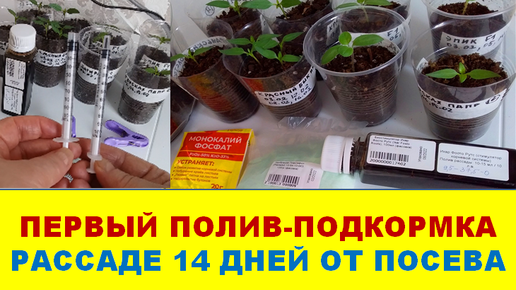 ПЕРВЫЙ полив-подкормка 14-дневной рассады ПЕРЦА и БАКЛАЖАНОВ